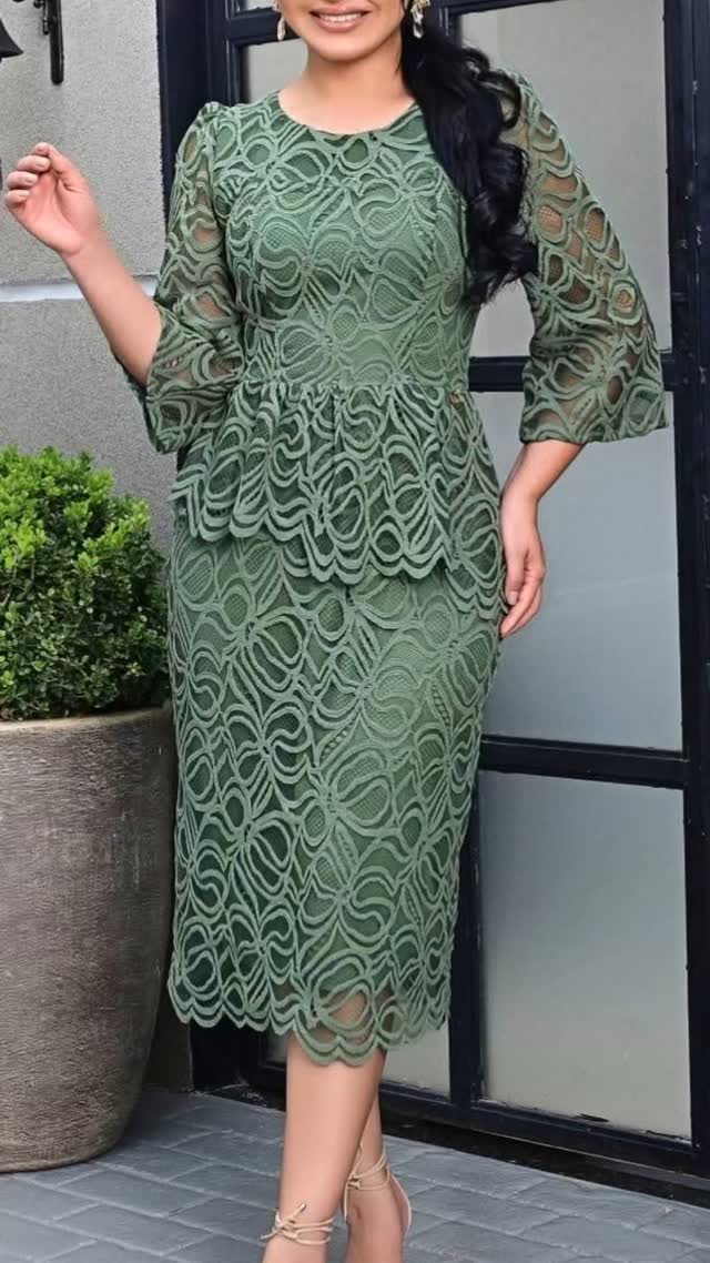 Vestido max mid em renda, manga 3/4, verde no tamanho GG e no azul tamanho XG.