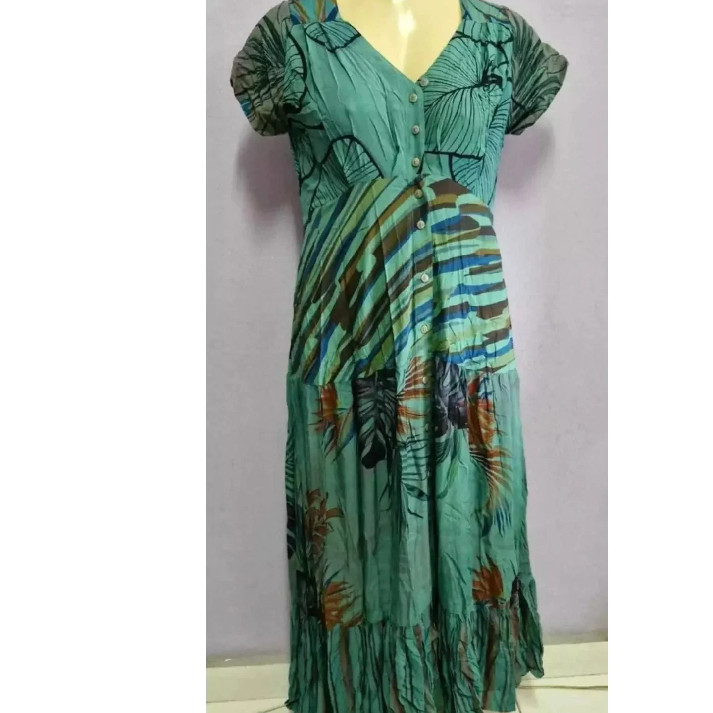 Vestido longo floral na cor verde tamanho G, amarelo no tamanho G. C com botões funcionais frontal.